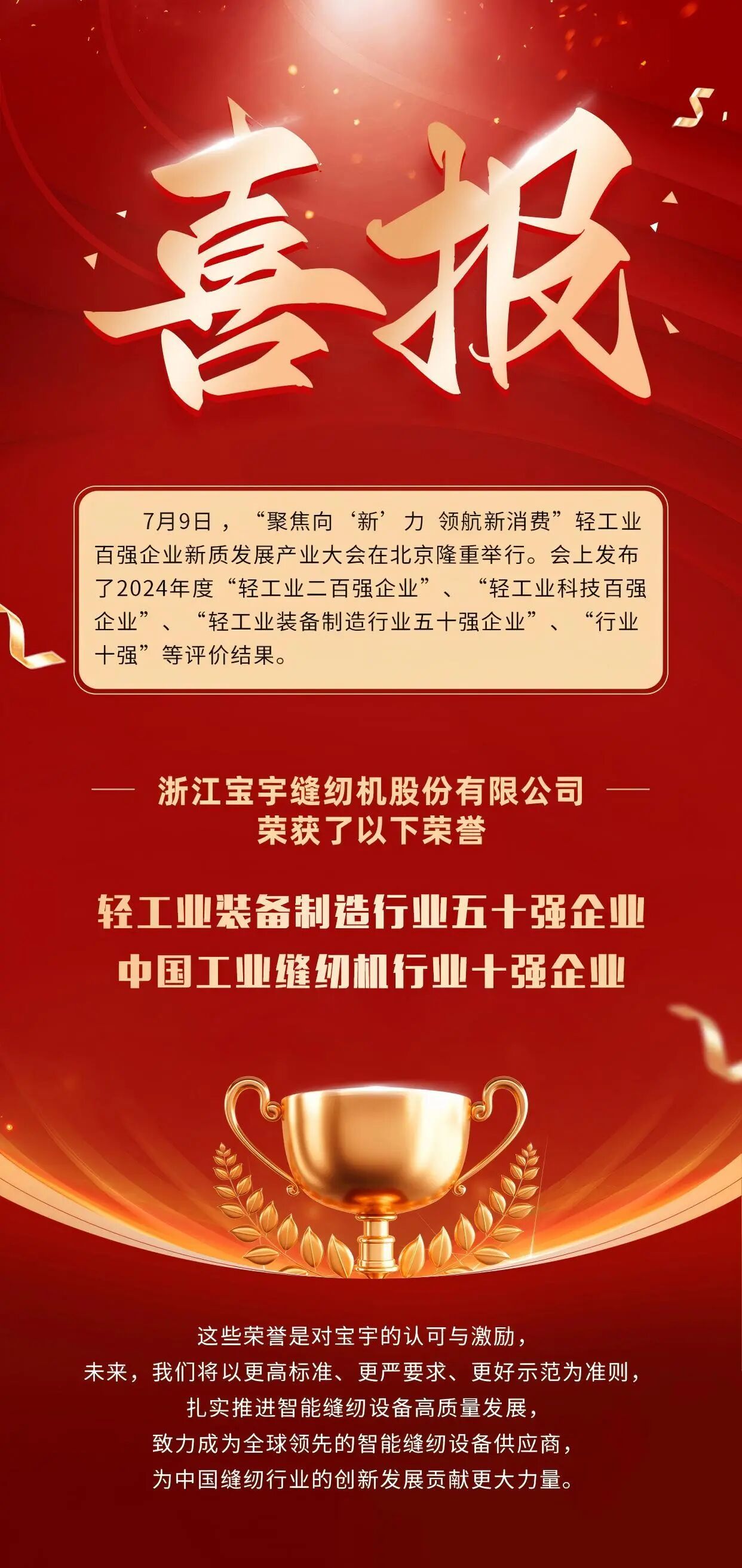2024年轻工业百强企业榜单发布,宝宇斩获多项殊荣!